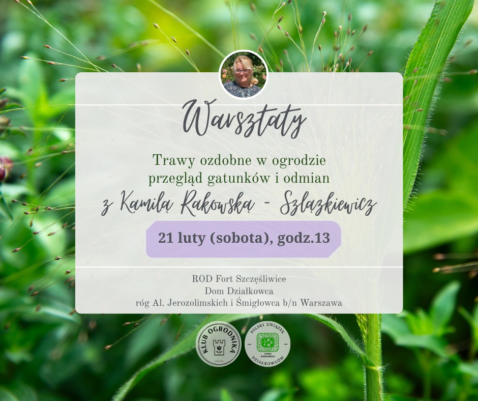 Pomimo mrozów i białej scenerii czujemy wszyscy nadchodzącą wiosnę. Dlatego też serdecznie zapraszamy wszystkich zainteresowanych na spotkanie z Panią Kamilą Rakowską Szlązkiewicz – ekspertką pracującą na co dzień w Ogrodzie Botanicznym w Powsinie, która poprowadzi zajęcia o trawach ozdobnych. Podczas szkolenia zapoznamy się z szerokim wachlarzem gatunków tej grupy roślin, dowiemy się, jak je uprawiać oraz nauczymy się, jak komponować rabaty z ich udziałem.